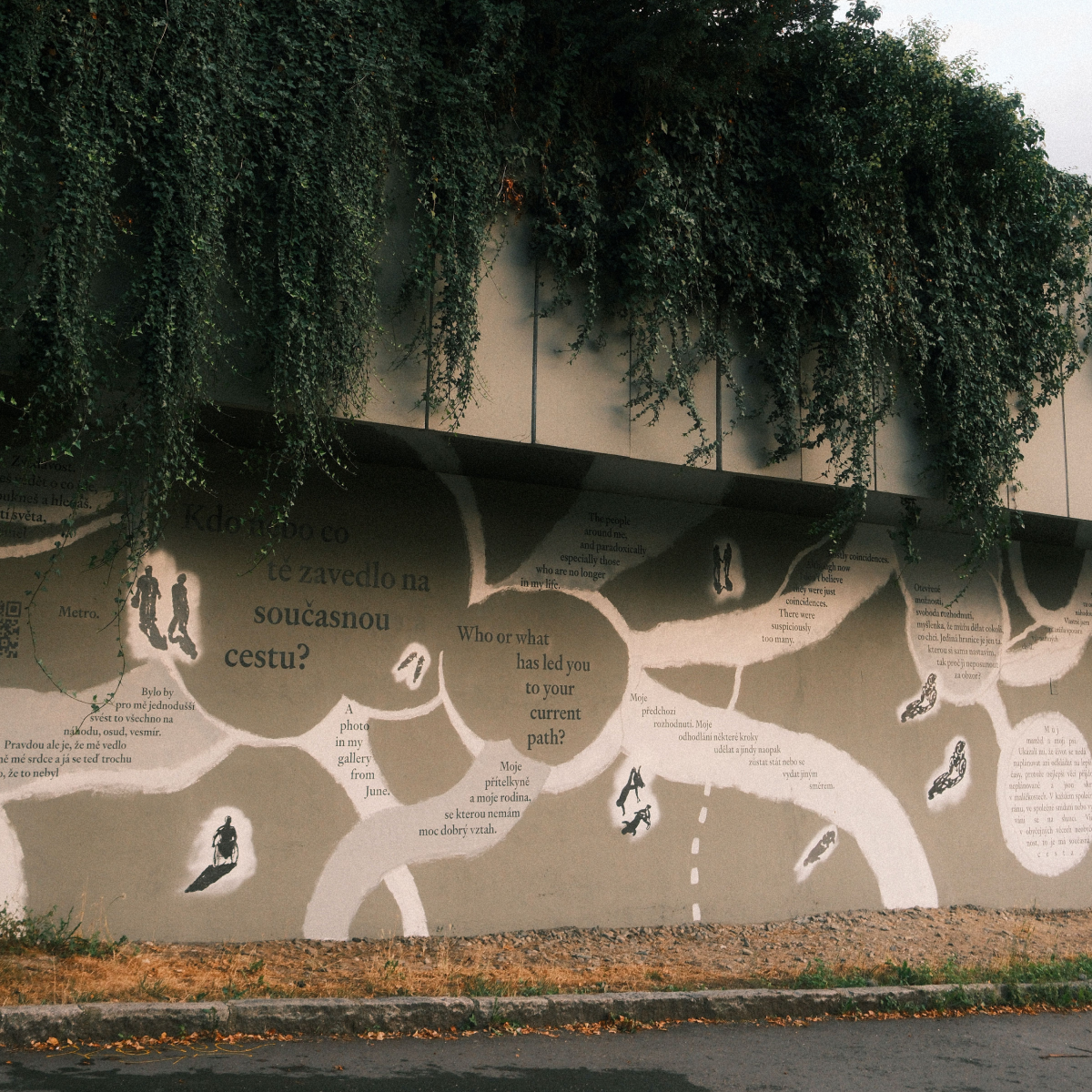 Realizace Crossroads je rozdělena do tří tematických kategorií: ODKUD / KUDY / KAM. Každá z nich představuje jiný úhel pohledu na proměnu umění, kultury, komunity i sebe sama. Do realizace se můžeš aktivně zapojit nejen na místě, ale také online prostřednictvím QR kódů, které Tě zavedou na web s interaktivním obsahem.